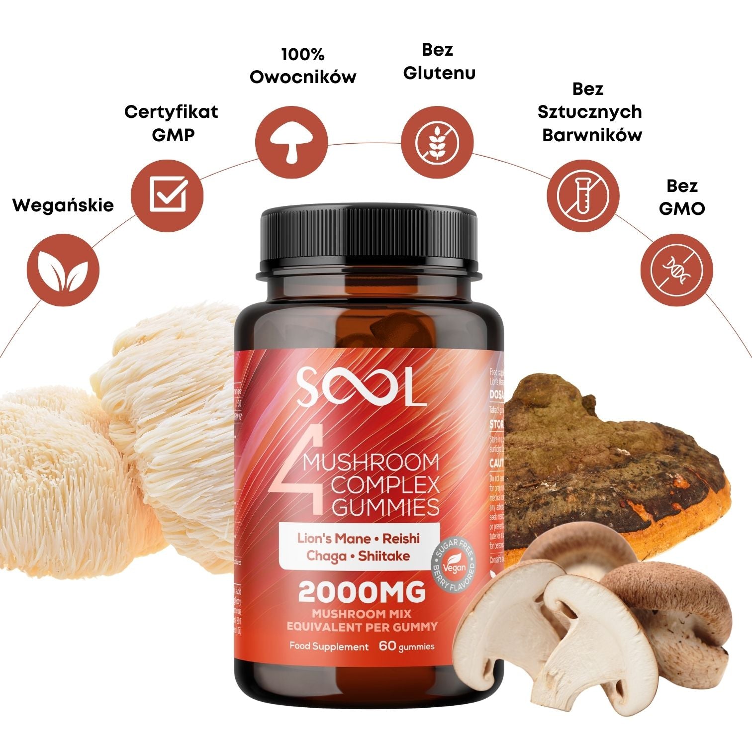 4 Mushroom Gummies 60pcs - Berry Flavour - Lion's Mane, Chaga, Reishi, Shiitake